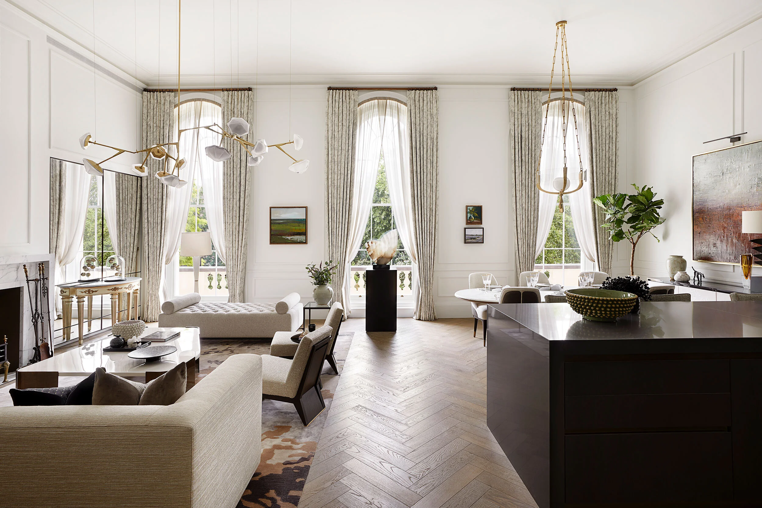 ‘We were inspired by Regency style and the building itself,’ says Millier associate architect Valeria Doro. ‘But we didn’t want to create just a replica of the Regency look. Instead, we wanted to bring in a balanced contemporary and modern luxury living with the use of certain materials and finishes used throughout the scheme, but applied differently. Focus on charm, grandeur, elegance and architectural proportions have been constantly leading us throughout the design process.’